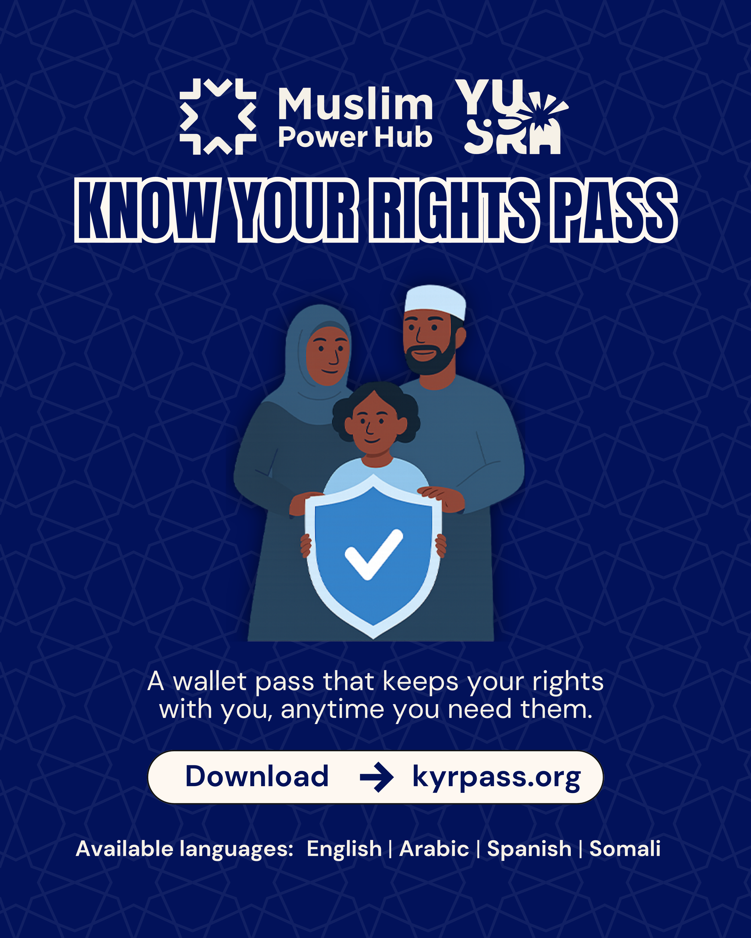 YUSRA is committed to ensuring our communities are informed, prepared, and supported in moments of uncertainty and heightened attacks, targeting, and surveillance against our communities. This page brings together Know Your Rights (KYR) resources, printable materials for community spaces, and opportunities to learn and act together.