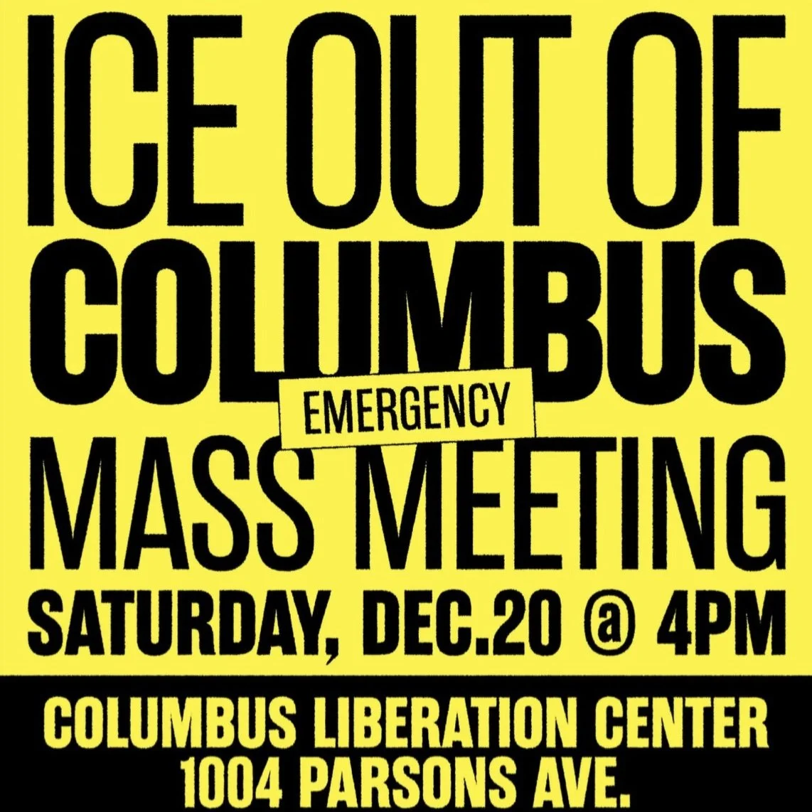 Join us for a mass meeting to share Know Your Rights materials, hear an urgent political orientation, and discuss the next steps for our fight to kick ICE out of Columbus!